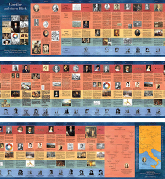 Die Leporello “Goethe auf einen Blick” und “Schiller auf einen Blick” stellen die wichtigsten Stationen beider Leben auf übersichtliche Weise dar und fügen sie in den damaligen gesellschaftlichen und politischen Rahmen ein.
